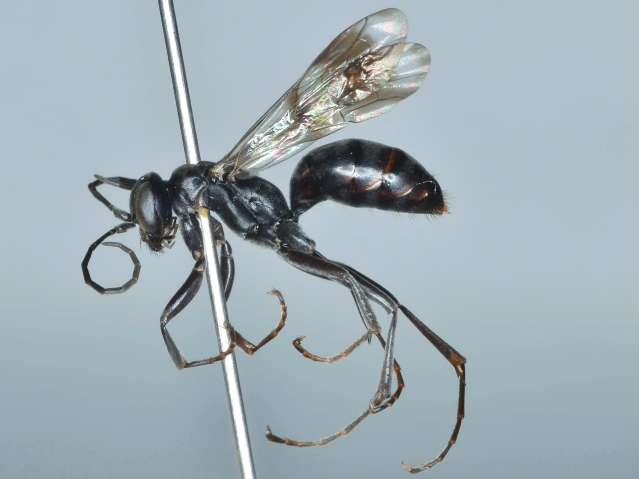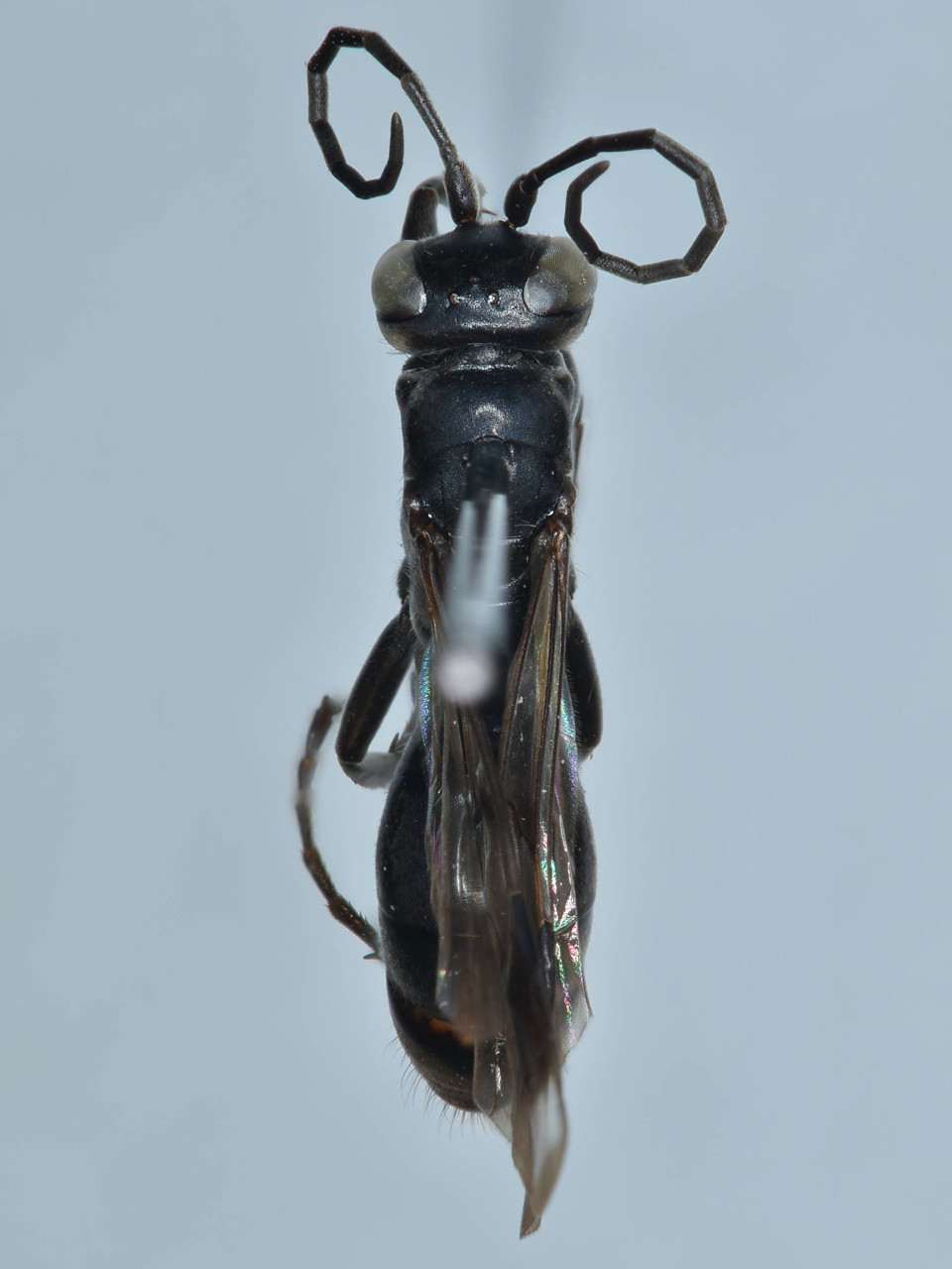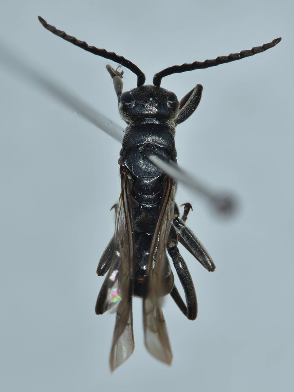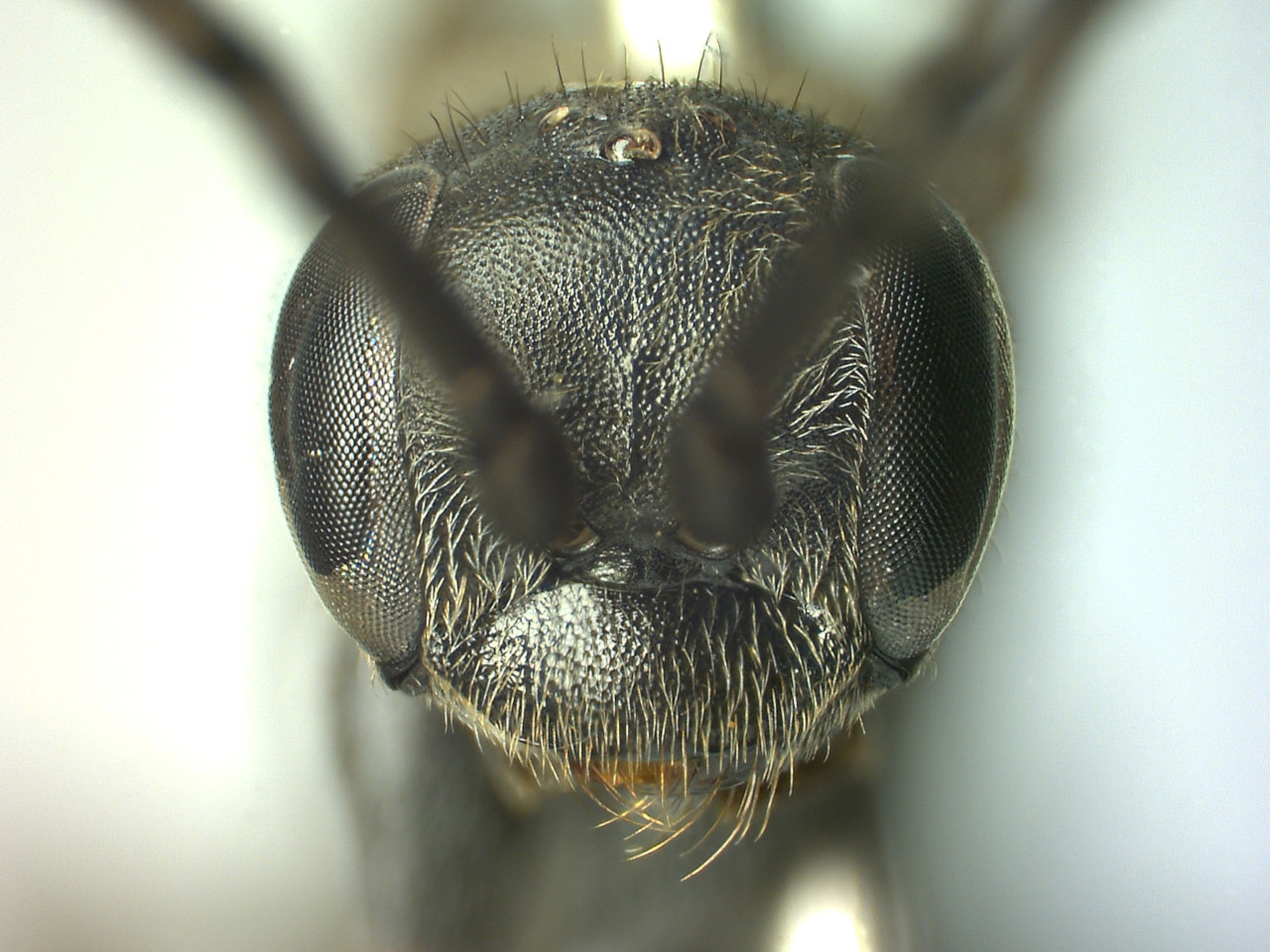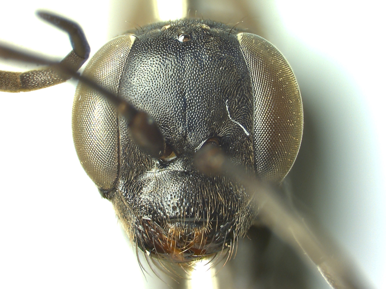 Body black, similar to Dipogon bifasciatus, but hairs on genae are much shorter and brown in color.