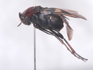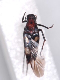 Elytra with two pairs of reddish brown spots. Head elliptical, projecting backwards.