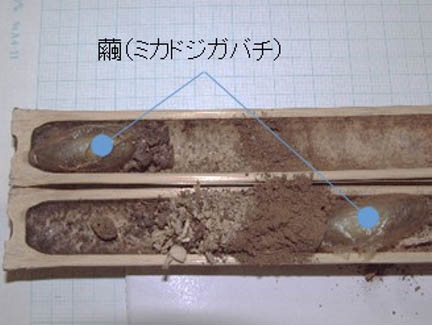 秋〜冬に竹筒を割ると、ハチの繭(まゆ)や蛹を見ることができます。