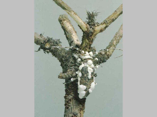 説明 硬化病菌類の一種。ごく普通種で、寄主は主に鱗翅目、鞘翅目および半翅目であるが、双翅目や膜翅目に感染するものもあり、その寄主範囲は広い。カイコの重要な病原菌にもなっている。また、マツカレハなどに流行病を引き起こすこともある。寄主の体表に白から淡黄色の分生子を形成するので、白きょう病または黄きょう病と呼ばれる。分生子は亜球形(2~3×2.0~2.5μm)。多くの系統があり、病原力や、寄主範囲、肉眼的な分生子の色などが異なる。本菌は各国で害虫の微生物的防除に用いられており、我が国でも本菌をマツノザイセンチュウのベクターであるマツノマダラカミキリの防除に用いるための研究が進められている。 |