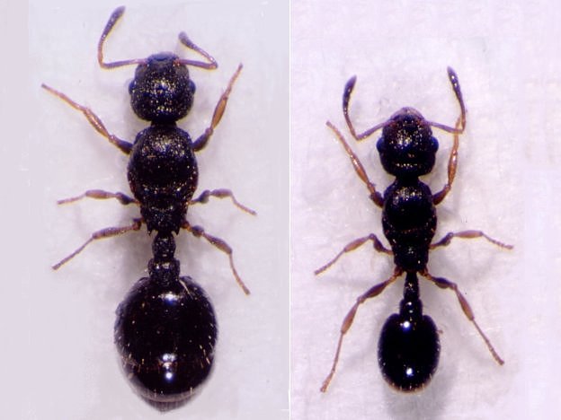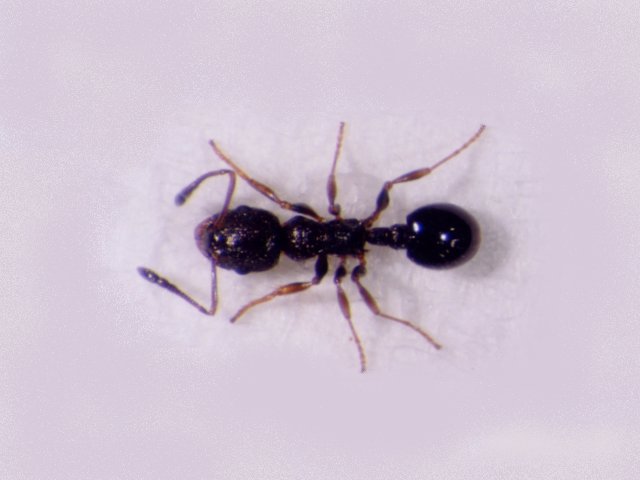 説明 体長2mmほどの黒色のアリで、河原、草地、林縁などの比較的開けた場所に住む。土中や地面に落ちた枯れ枝の中に営巣し、コロニーサイズは平均20~30匹程度。益虫や害虫としては目立ったところがないが、一部の個体群で女王に体サイズ二型(大型女王と小型女王)が見られ、アリの生活様式の多様性を研究する上で興味深い。6月頃巣の外で交尾した後、大型新女王は新しい巣場所を見つけて一匹で巣作りを行うのに対し、小型新女王は母巣に出戻ってくる(全ての小型女王が出戻るのか、一部の小型女王は大型女王のように一匹で巣をつくるのかは不明)。このため、大型女王の巣では女王は一匹しかいないが、小型女王の巣では女王が2匹以上いる場合が多い。なぜ同じ個体群の中に大型女王タイプと小型女王タイプが共存しているのか、大型になるか小型になるかを決めているのが栄養条件などの環境要因なのか遺伝的要因なのか等はまだわかっていない。 |