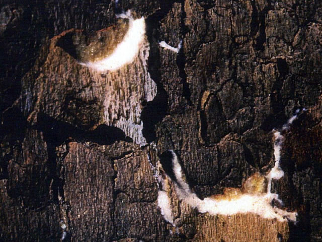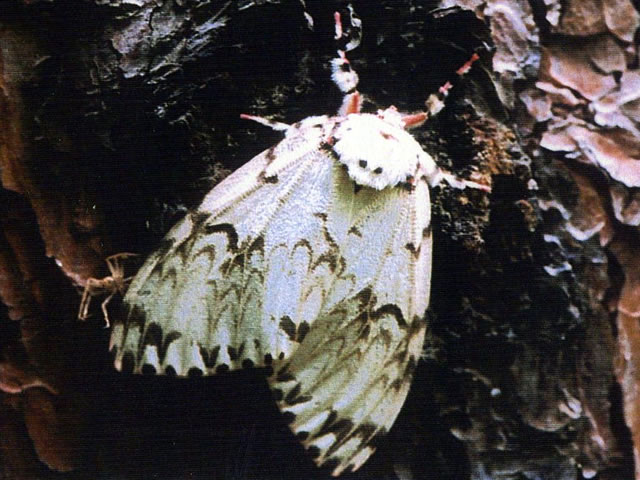 説明 成虫の開張40~50mm。雄の体と翅は暗灰色で、腹部は黄橙色。前翅には暗褐色の波状の帯があり、後翅は黄色。雌はやや大きく、灰白色で腹部は淡紅色。幼虫は体長40~60mm、黒褐色で、各節には数個の疣状突起があり、長い毛束を持つ。卵は幹上に塊状に産卵される。幼虫はカシワ、コナラ、ミズナラ、クヌギ、クリのほかサクラ、リンゴなどを食害し、広葉樹天然林で大発生することがある。1年1化。 |