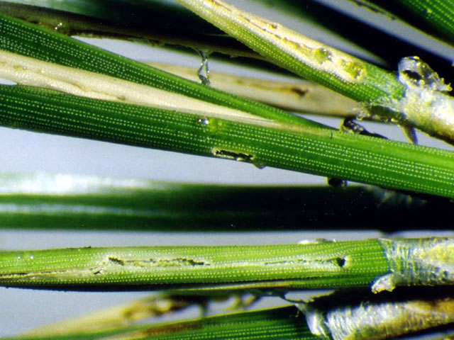 説明 成虫の体長3.3-3.9mm。全体光沢のある黄褐色。卵は落葉などに塊状(卵塊あたり2~40卵)に生まれ、幼虫は土中で暮らす。成虫はアカマツ、クロマツ、スギ、ヒノキ、マツなど針葉樹の葉を後食する。後食による食害は6月上旬から始まり、6月中・下旬にピークとなる。過去にしばしば大発生し、スギ・ヒノキ林や、アカマツ・クロマツ林で大きな被害をもたらしたことがある。2年1化。 |