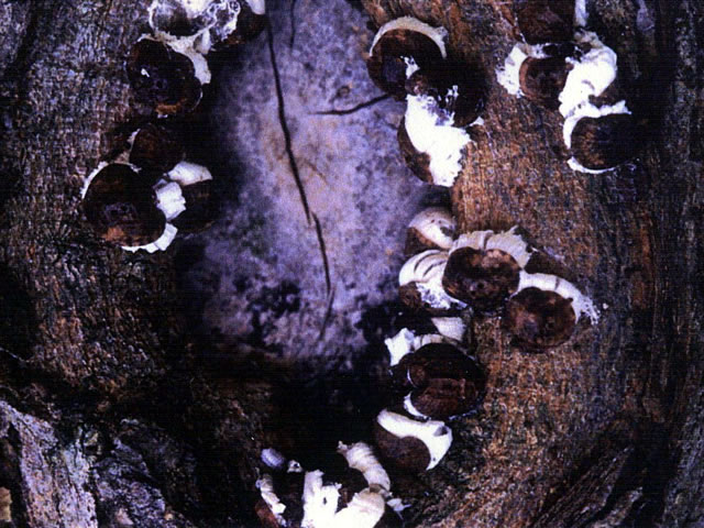 介殻はほぼ円形で直径約8mmで、中央部が縦に隆起する。4月ころから白い卵嚢を形成する。カエデ、トチノキ、シイ、カシ、センダンなどの幹や枝に寄生して吸汁する。