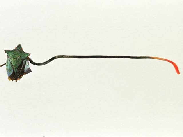 夏季、落ち葉の下や土の中のカメムシ類から生じる。柄は黒く先端が膨らみオレンジ色を呈し、子実体の伸び出す部分はほとんどが胸と腹とのつなぎ目の部分である。オレンジ色の部分に胞子ができる。冬眠のために地面に潜ったカメムシ類に感染しているものと考えられる。