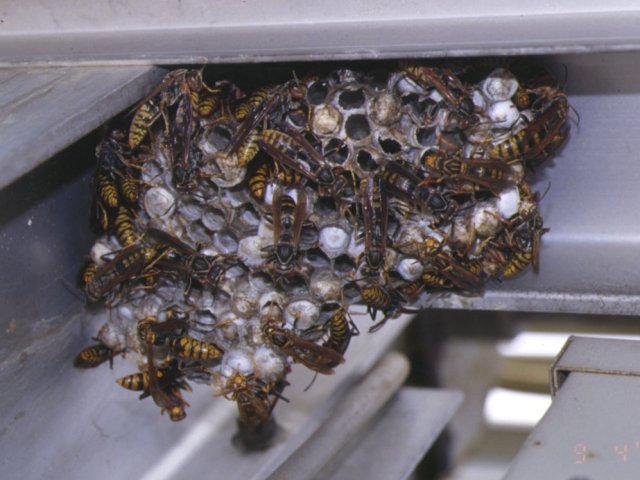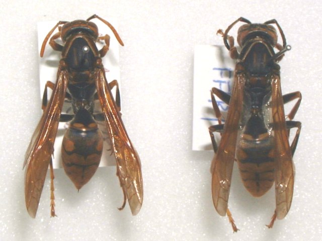 説明 体長は約21~26mm。体色は黒色で黄褐色の斑紋がある。前伸腹節が黒色であることが和名の由来。近似種のキアシナガバチとともに日本で最も大きなアシナガバチである。キアシナガバチとよく混同されるが、本種の前伸腹節は黒色である(ただし、この形質は沖縄では使えない)。オスは触角の先端が細いので、容易に区別できる。人家の軒先や樹木の枝に営巣する。キアシナガバチは低山地に多いのに対して、本種は平地に多い傾向がある。働きバチ数は最大でも約50匹である。最近の研究により、従来の学名(Polistes jadwigae)が訂正された。 |