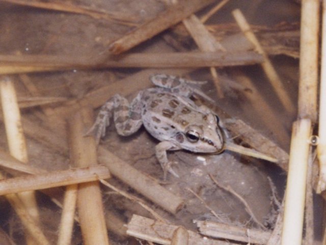 説明 トノサマガエルよりもさらに水田に結びついた種で、あまり水田周辺から離れることが少ない。区別点:背中のまん中の淡色の条は(1)まったくないか、(2)あってもとぎれとぎれの事が多いが、時には完全にあり、トノサマガエルとの区別が難しい場合がある。斑紋は雄でも明瞭。雌でも地色が褐色を帯びることが多い。足の長さがトノサマガエルより短いのであるが、慣れないと区別は難しい。鳴き声:中国地方の個体群は、ゲーッ、ゲーッという長い声で鳴くが、他の地域ではゲゲゲゲッという短い声で鳴く。 |