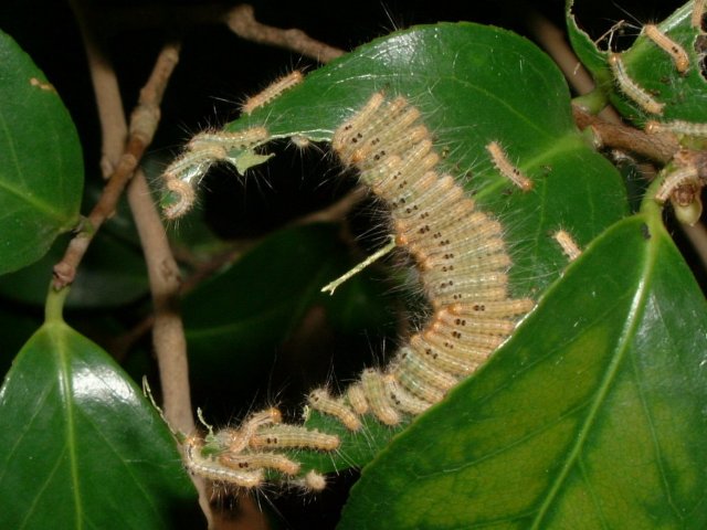 成虫の体長25~30mm。ツバキ、サザンカ、チャノキなどに異常発生することがあり、幼虫には毒毛があり触れるとかぶれるので衛生害虫としても有名。年2回発生。卵越冬し、1回目の幼虫は4~6月、2回目は7~9月に見られる。初期の群棲幼虫は、毒毛に注意して取り除く。またはDDVP、スミチオン乳剤1000倍などの散布を行う。