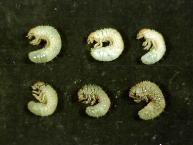 説明 ポックスウイルス科に属し、ドウガネブイブイの幼虫に寄生する。ドウガネブイブイのポックスウイルス病は日本から報告されているだけであるが、ヨーロッパ、中国など日本以外からもコガネムシ幼虫に寄生する類似のウイルスは発見されている。罹病虫は生存中から体色とくに尾部が白化して見える。ウイルスは主に脂肪細胞、ときに血球の細胞質で増殖する。顕微鏡で見ると楕円体と紡錘体の2種類の封入体を作るが、ウイルス粒子は楕円体の方だけに包埋されており、紡錘体には含まれていない。他の病原との併用ではドウガネブイブイ幼虫の死亡率に相乗的効果がみられ、またドウガネブイブイ密度の高い野外では本ウイルスの感染率が高いことから、個体群密度への影響は大きい可能性があるが、増殖が困難なことから微生物的防除への利用は行われていない。 |